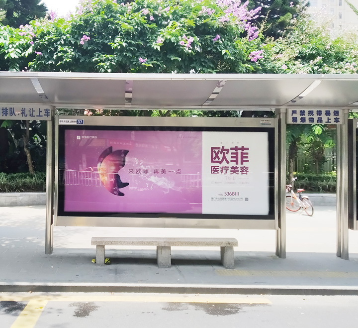 一般情況下,候車亭廣告使用單一的顏色作背景,文字采用與背景顏色反差較大的色彩,這樣既能襯托主體,又能令遠(yuǎn)處的人可以清楚地看到。
